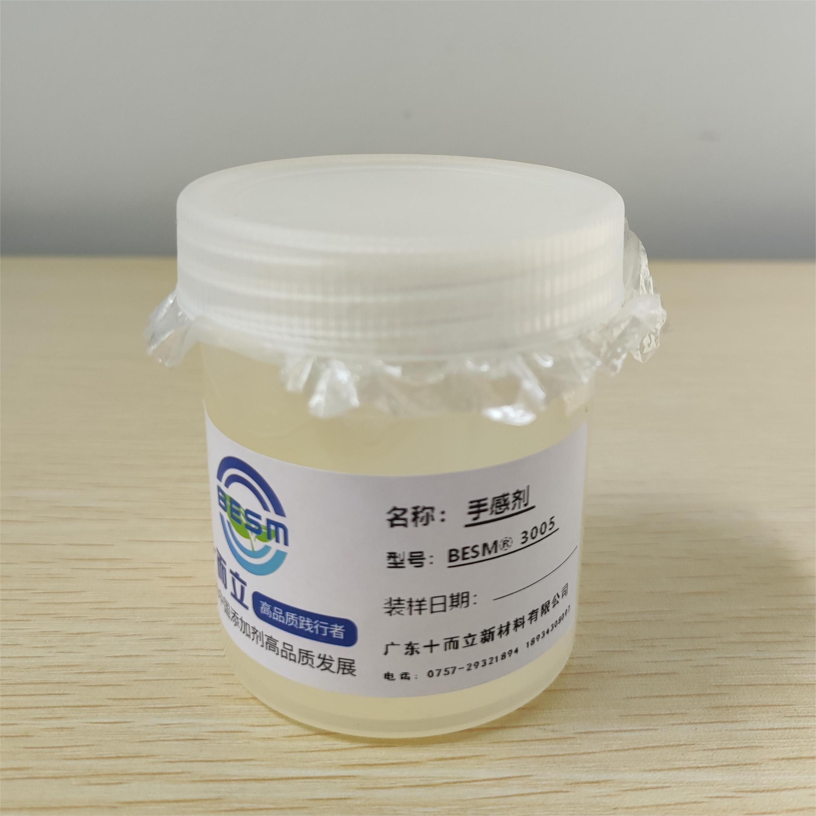 BESM®3005是大分子硅氧烷,比普通的手感剂更低的添加量,更细腻的手感,更好的滑度。广泛应用于皮革表处,乳胶手套,种子包衣,涂料和墨等行业。